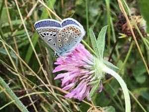 Bisher konnten auf der gesamten Obstwiese zehn Tagfalterarten beobachtet werden. Neben den bereits vorhandenen Schmetterlingen wie Tagpfauenauge, Admiral, Ochsenauge, Grünader-Weißling und Schornsteinfeger gesellten sich offensichtlich der Ikarus-Bläuling und das Wiesenvögelchen dazu. Ein schöner, erster Erfolg. Nachweislich nutzen auch mehrere Heuschrecken-Arten bevorzugt die Wiesenneuanlage, da dieser Bereich lichter und somit trockener und wärmer ist. Für 2025 ist geplant jeweils eine Infotafel zu den vorkommenden Pflanzenarten sowie zu den zu beobachtenden Insekten aufzustellen.
